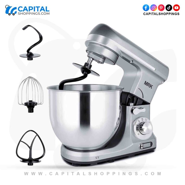 6QT Stand Mixer,1000W MRK LED Timer Display Electric Kitchen Food Baking Mixer 6-Speed with 4 Accessories for Household(Silver Grey)