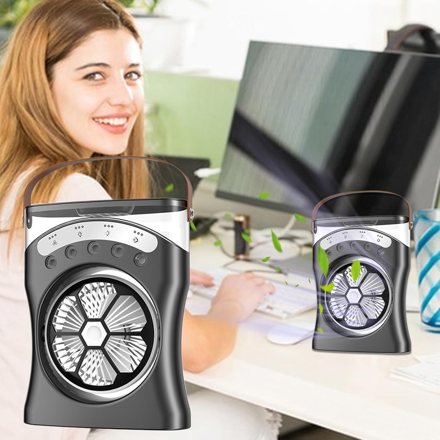 • Improved Cooling Experience: Provides 180-degree rotation and adjustable airflow, combined with a 550ml tank, for extended hydration and flexible cooling coverage at various angles