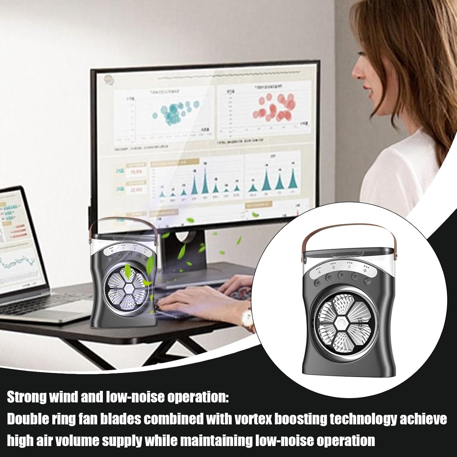 • Double-Ring Airflow Design: Designed to combat heat, with a double-ring structure, this fan provides high-volume airflow and operates quietly, making it suitable for creating a calm and cool environment