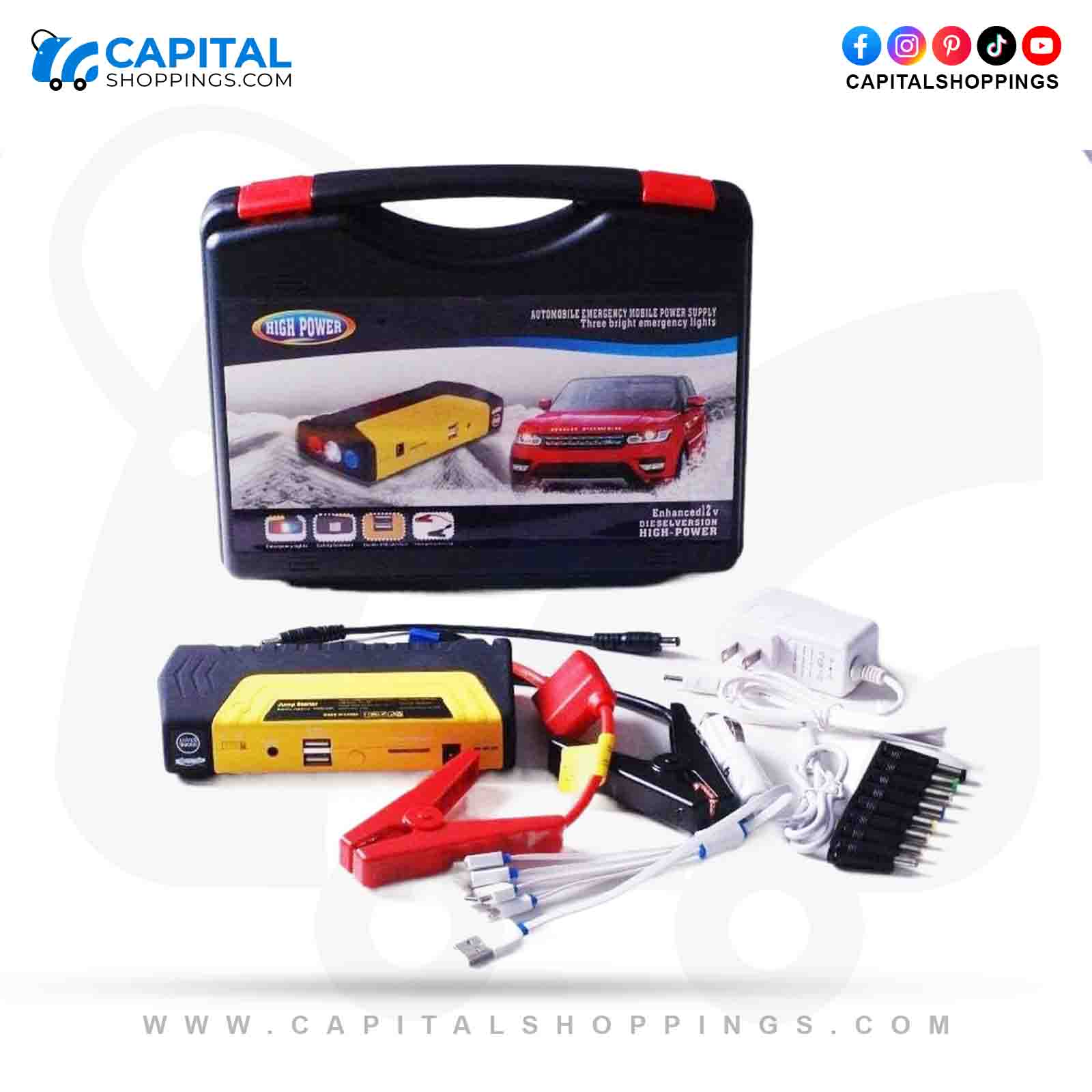 Category: Car Accessories Tags: 68800mAh Jump Starter, Car and Laptop Charger, Car Battery Charger, Car Emergency Starter, Emergency Car Power Supply, Heavy Duty Jump Starter, High Capacity Power Bank 68800mAh, High Power Jump Starter, Jump Starter with USB Ports, Laptop Power Bank, Mobile Charger Power Bank, Multi-Function Jump Starter, Portable Auto Jump Starter, Portable Car Battery Booster, Powerful Car Jump Starter