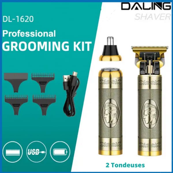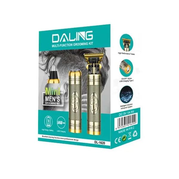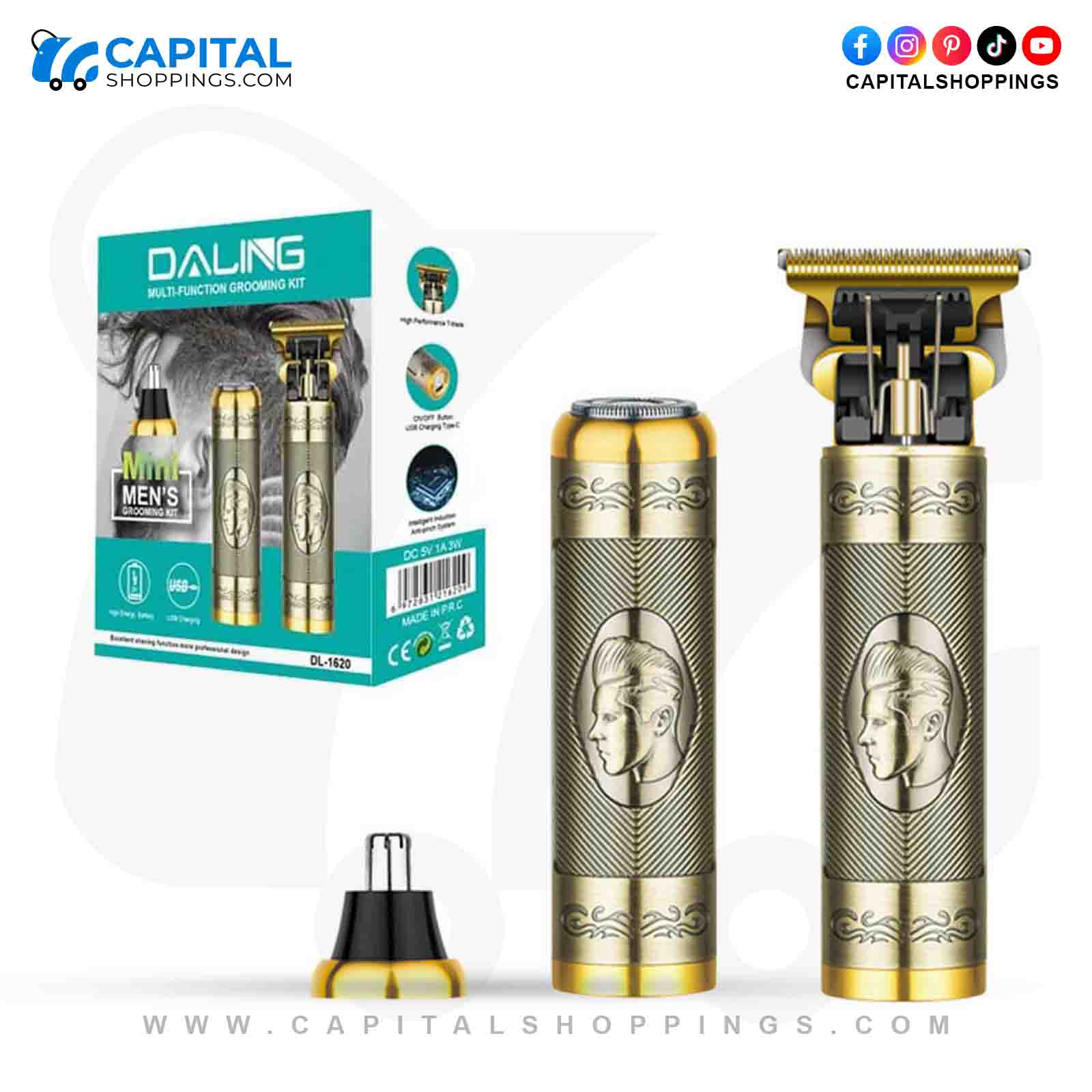 hair clipper manufactured by the d designed for professional use. While I don’t have specific details aout this particular model, professional hair clippers typically offer features such as powerful motors, adjustable blade settings for various cutting lengths, ergonomic designs for comfortable handling during extended use, and durable construction to withstand frequent use in a salon or barbershop setting. If you’re considering purchasing this clipper or want more information, you might find reviews from users or product specifications from the manufacturer helpful in making your decision. 3-in-1 Multifunctional Kit: Daling DL-1620 Hair Trimmer is not just a hair clipper, but a complete kit that includes beard and nose hair trimmers. A single device to meet all your grooming needs