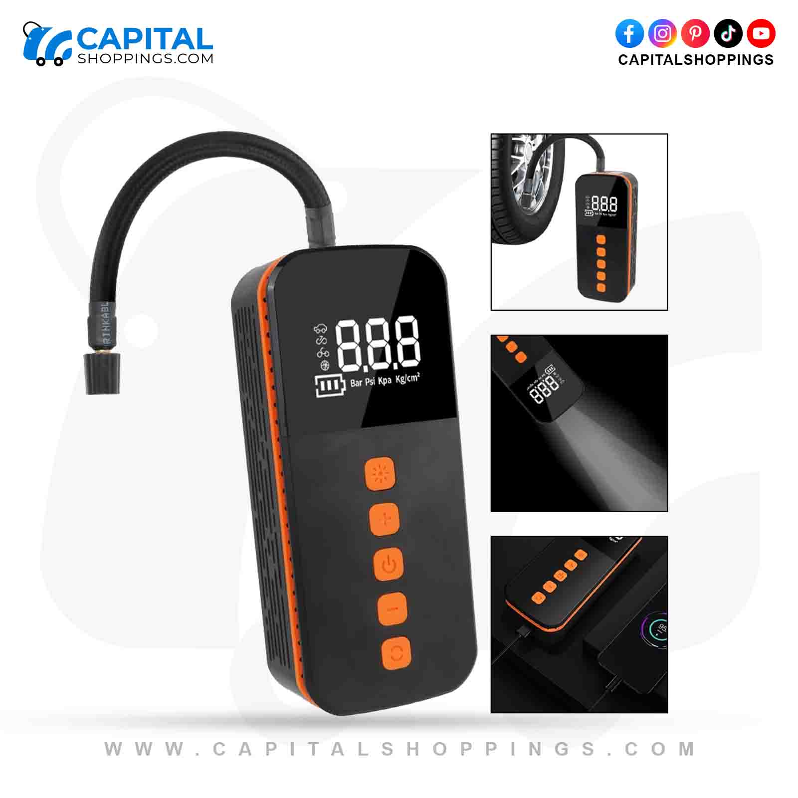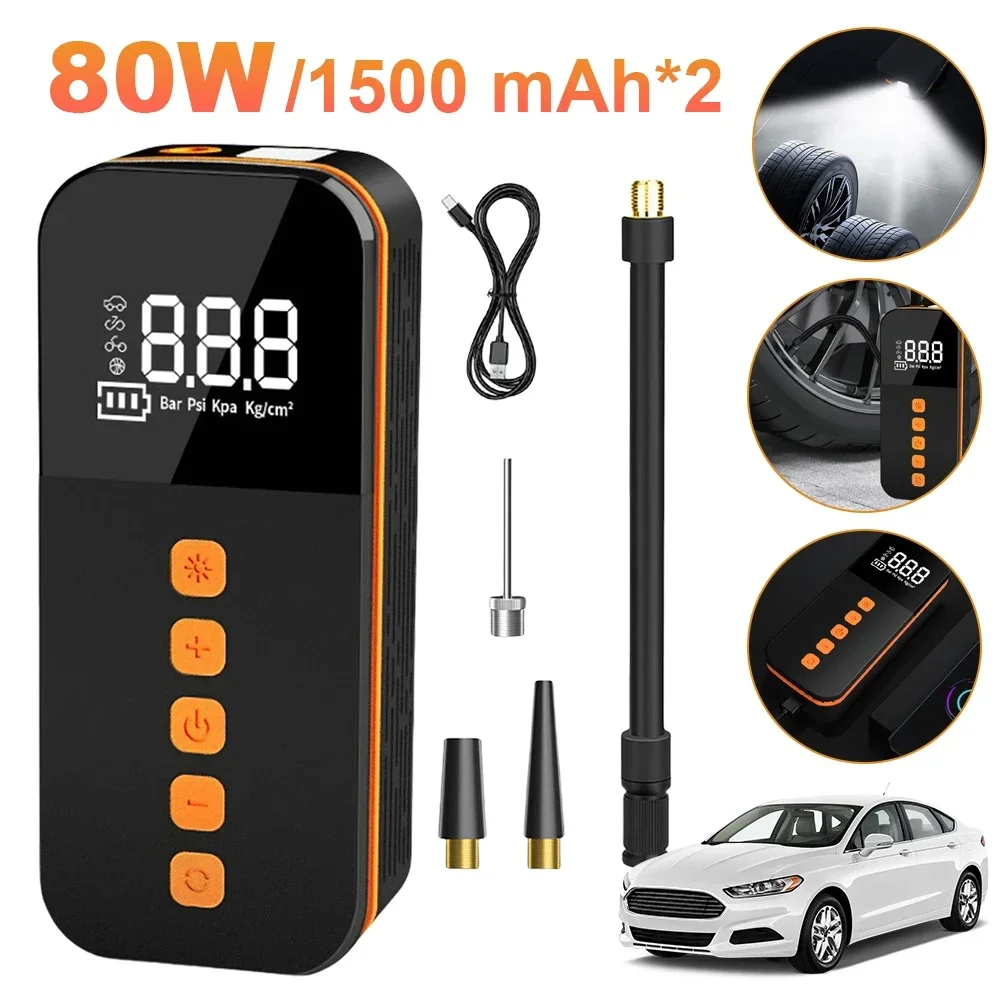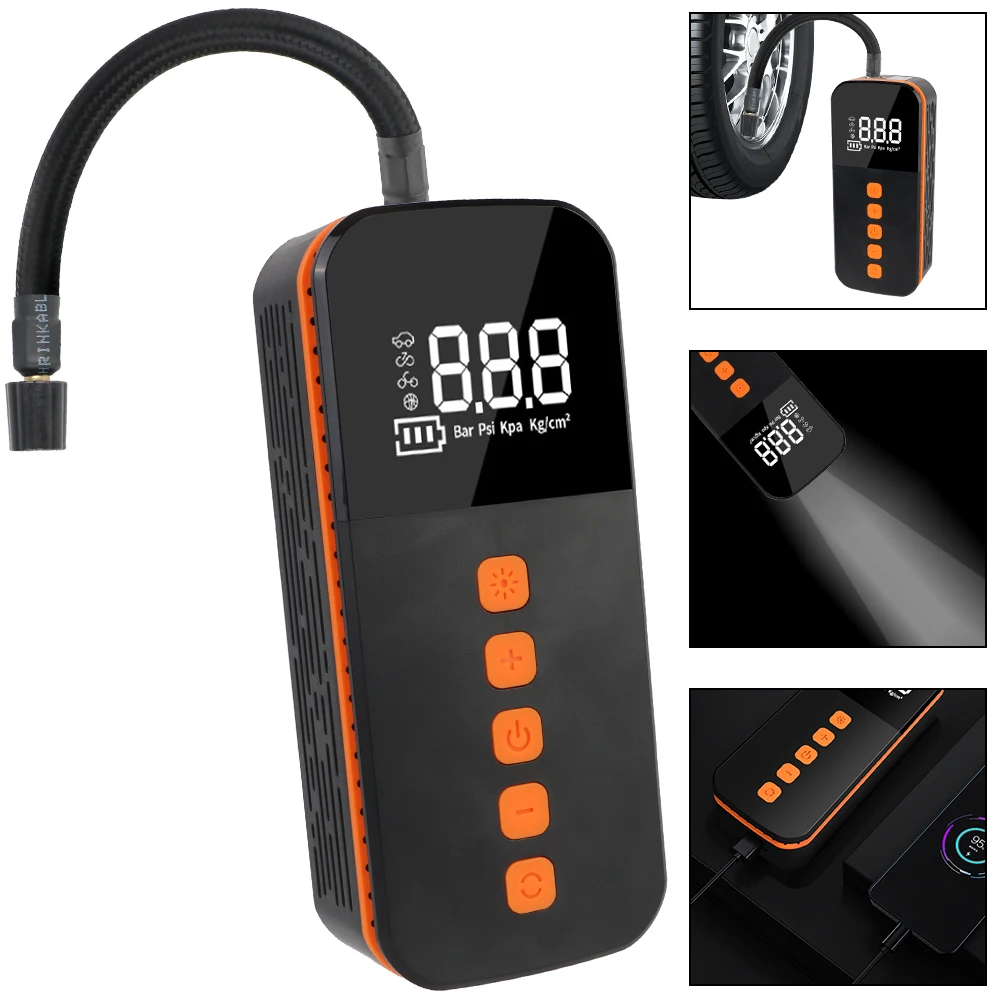 Stay prepared on the road with this cordless electric tire inflator and bike pump. Designed with a digital pressure gauge, it provides accurate readings and effortless inflation for cars, bikes, motorcycles, and sports equipment. Its cordless and portable design makes it easy to carry, while the powerful air compressor ensures quick and reliable inflation anytime, anywhere.