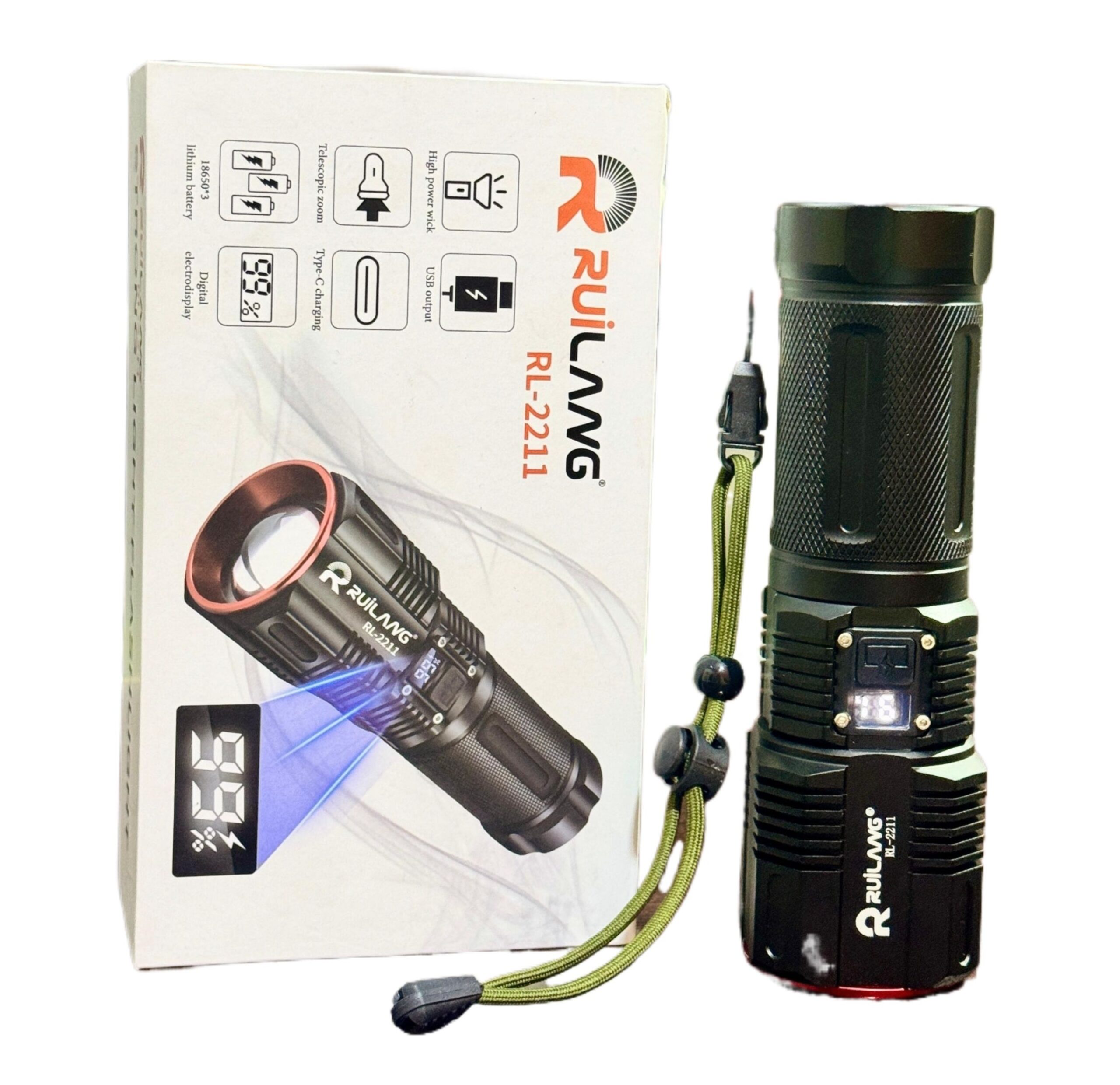 Super Bright Rechargeable LED Torch (8800mAh) – Outdoor aur emergency use ke liye ek powerful aur reliable torch. Is torch ka 1.5 KM long range beam aur telescopic zoom feature aapko dark environment me perfect visibility provide karta hai. Built-in digital power indicator aur 8800mAh battery ensure karte hain long backup time. Saath hi, ye power bank supported torch aapke mobile devices ko bhi charge kar sakti hai.