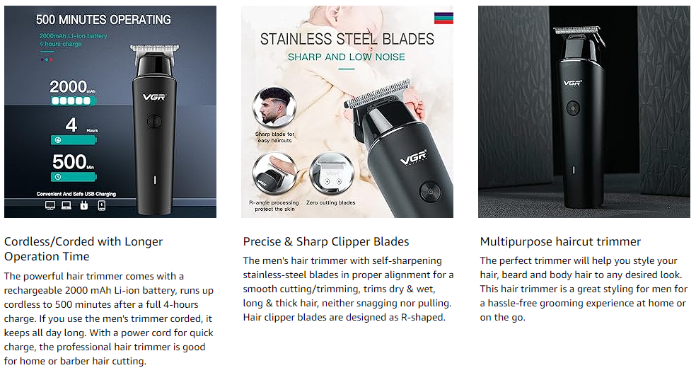 It comes with a Professional Stainless steel, skin-friendly blades for the best shaving experience. Along with multiple comb attachments, which work for different hair lengths up to 4.5 mm.